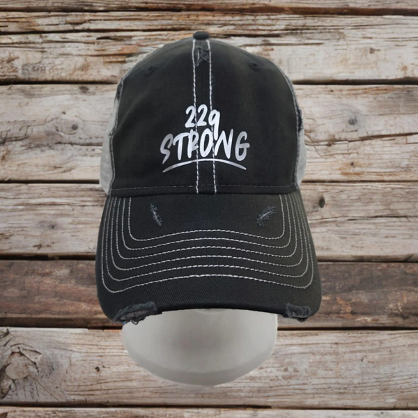 This hat is not just a fashion statement, it's a symbol of strength and resilience. The 22q strong, silver design is a reminder of the challenges faced by those with 22q deletion syndrome. It's a hat that represents courage, determination, and the unwavering support of a community. Wear it with pride and help raise awareness for this important cause.