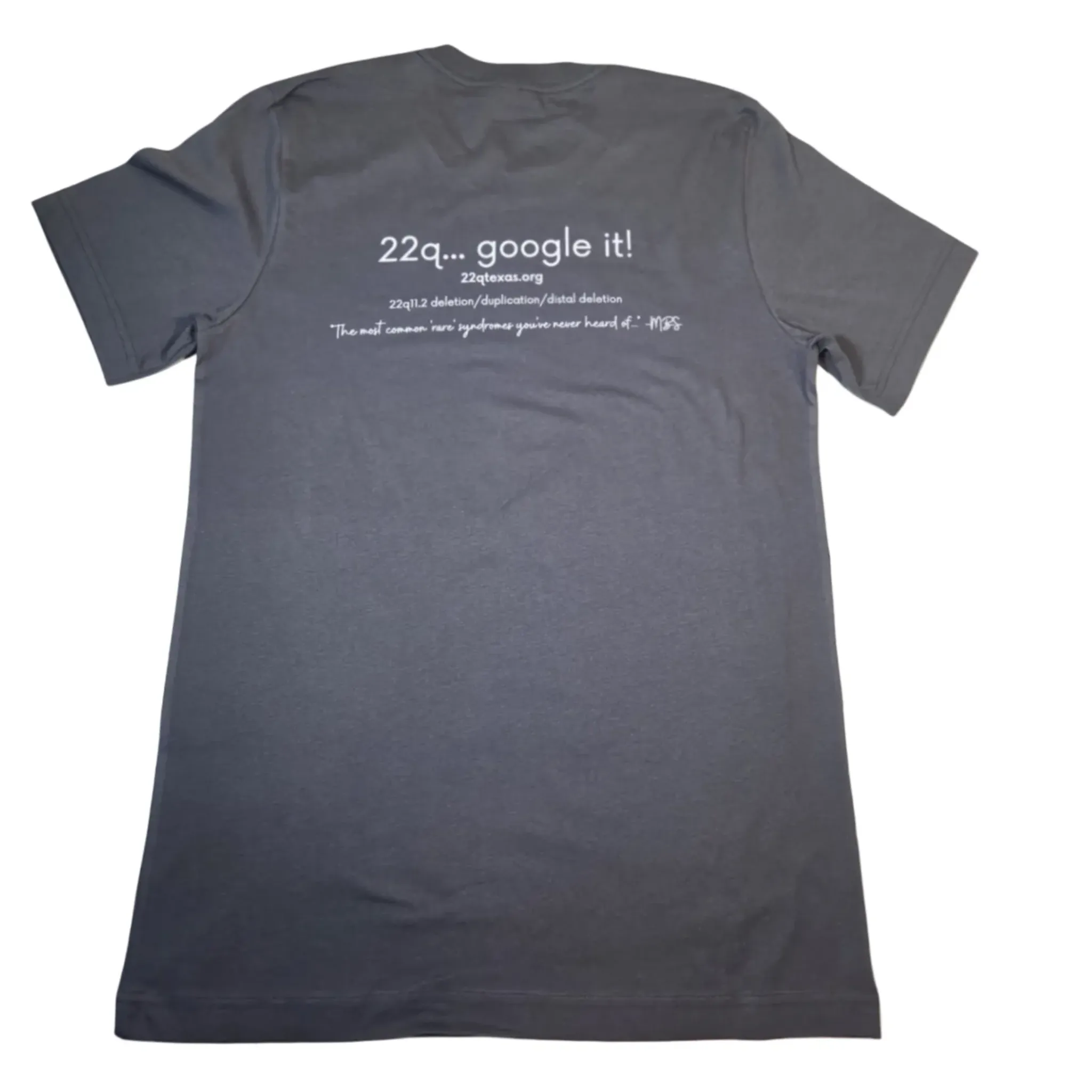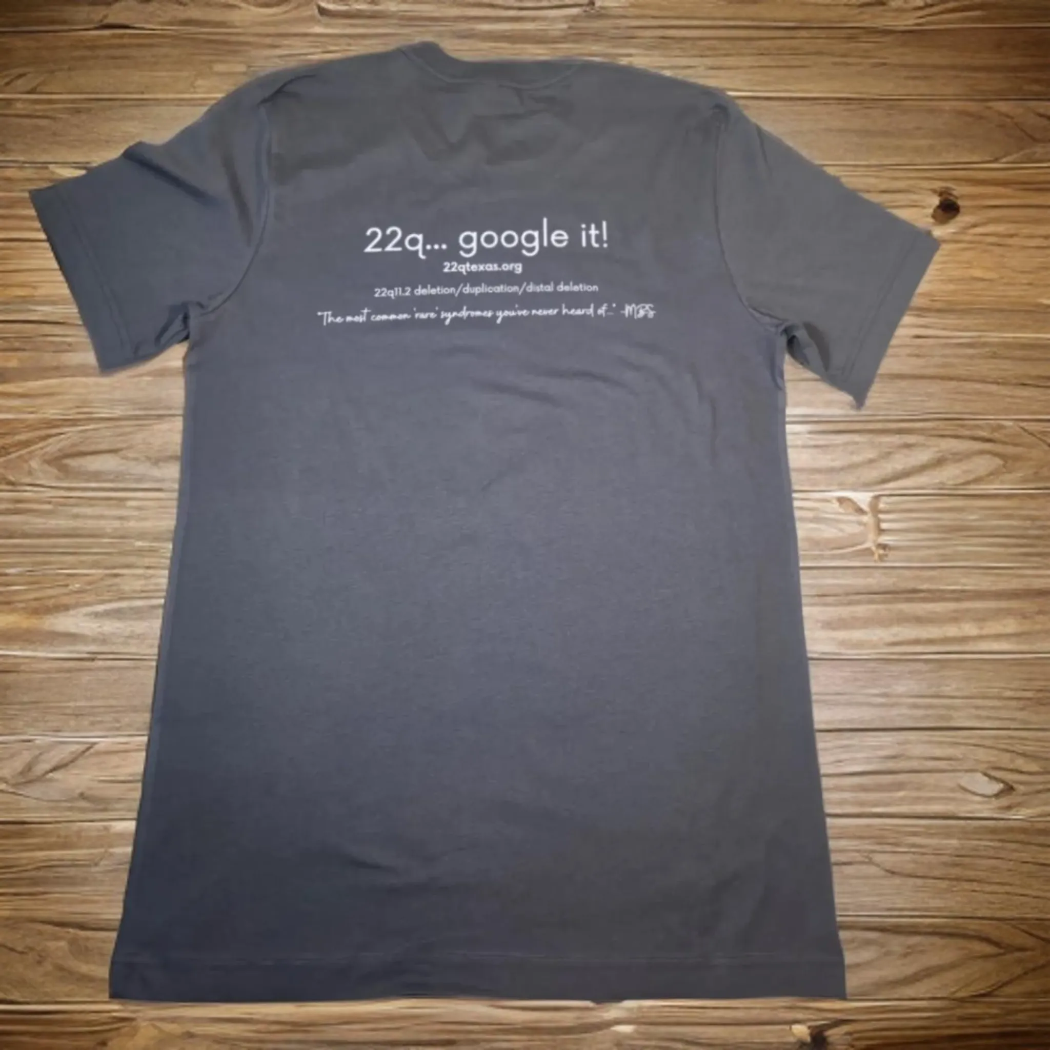 Calling all cool kids! This super-fun gray shirt rocks a vibrant 3-color design that's as awesome as you are! Show your 22q Texas spirit and spread 22q awareness with every twirl, jump, and playground adventure. The stylish look keeps you fashion-forward while sharing something important—because even young superheroes can make a difference while looking totally fantastic! Ready to wear your heart on your sleeve? This shirt's for you!