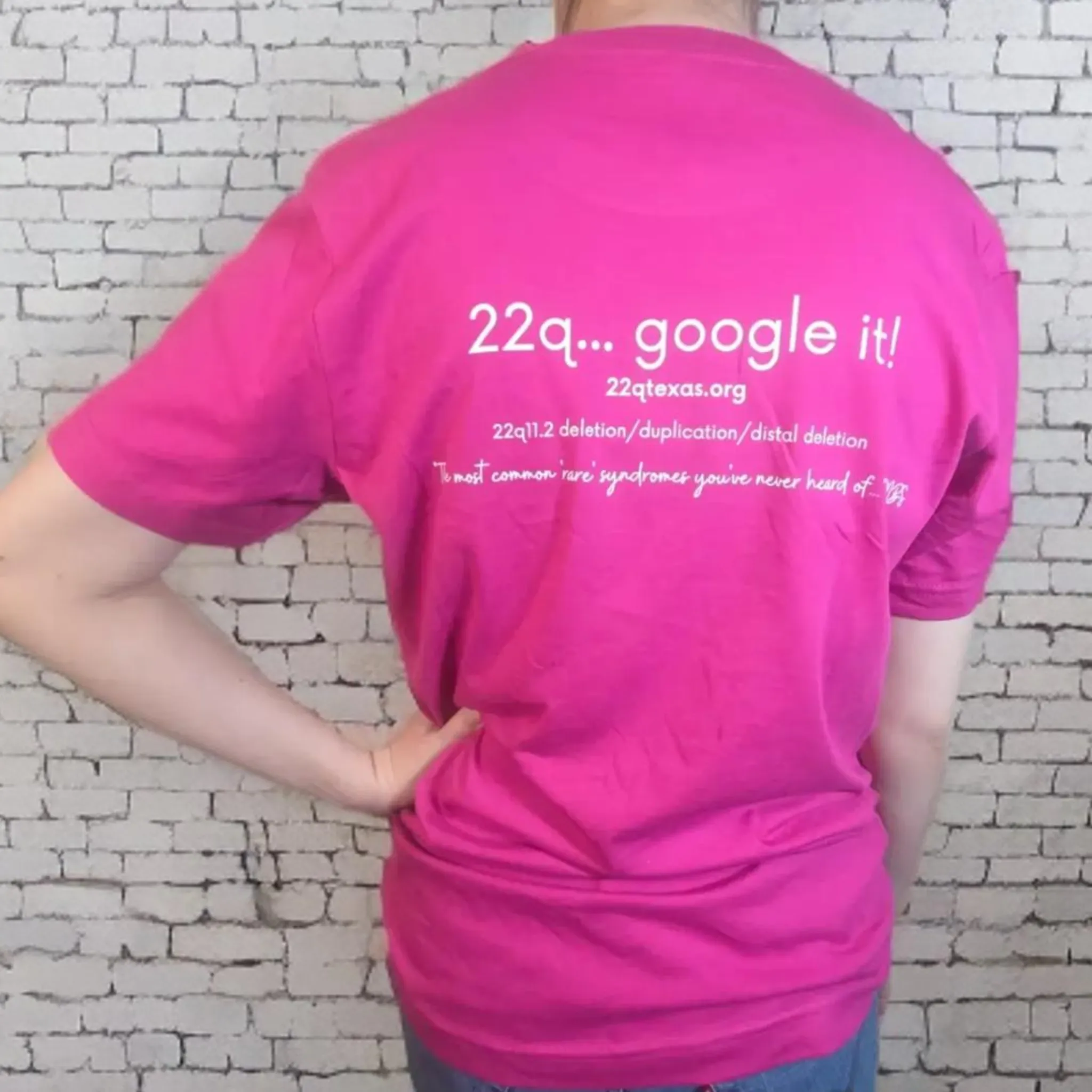 3 color ADULT 22q Texas Awareness Shirt, pink